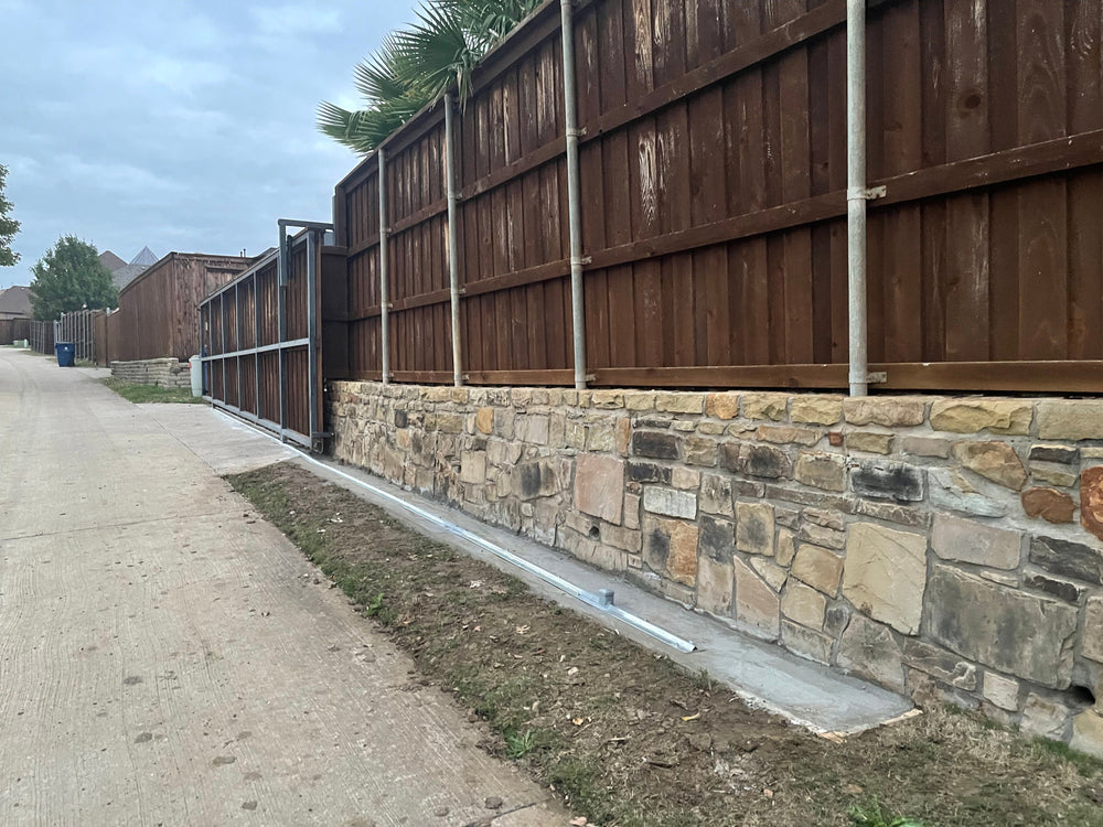 Installation of a new heavy duty concrete sliding gate track base in Frisco